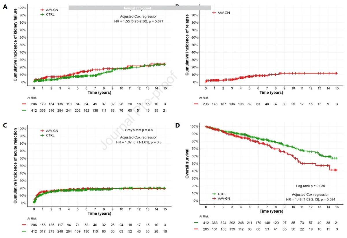 • AAV-GN não aumenta risco de rejeição ou recidiva precoce, mas associa-se a maior mortalidade e perda do enxerto a longo prazo.